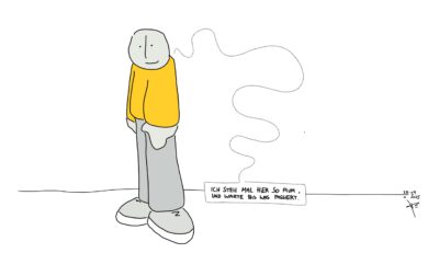 oft ist es unumgänglich , um im gespräch mit sich selbst weiter zu kommen , eben hinten um sich herum zu sprechen . wenn ausgesprochen , siehst du dann beim wieder nach vorne sehen , was du eben nach hinten noch formuliert hast .