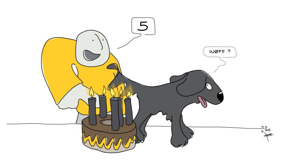 heute wird horst 5 jahre alt UND er stellte mir die alles nicht wirklich bewegende frage , wie er als hund die kerzen unfallfrei aus bekommen sollte .. bellen ? schütteln ? markieren ? hecheln ? sabbern ?